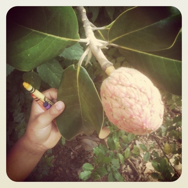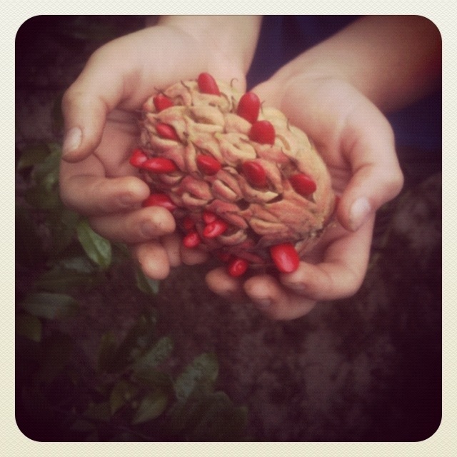 Look what we found at the garden today! The flowers from the magnolia trees on our campus have faded and today we found some seed pods spreading open to reveal bright red berries. We broke open the berries to find the magnolia seeds. We had a great teachable moment about flowers, berries, and seeds today after we made this discovery!