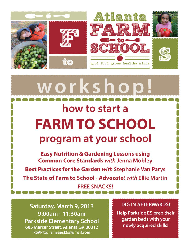 I was thrilled to be invited back to lead another workshop for the Atlanta Farm to School group. Check out the post from our last Atlanta F2S Workshop in November here. Hope to see you all at Parkside Elementary School on Saturday, March 9th!