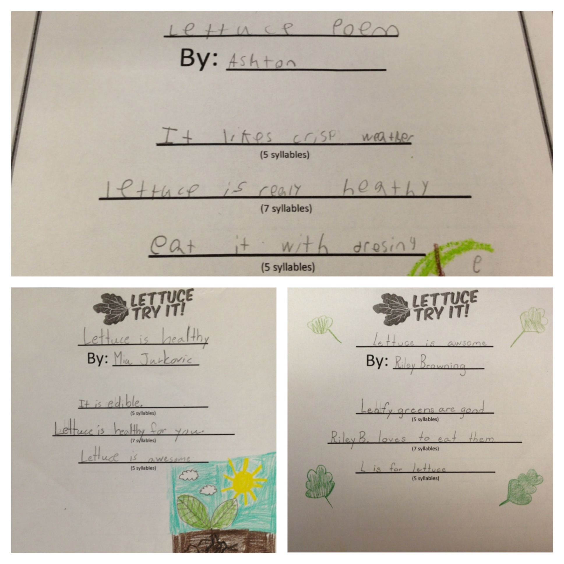 First and second grade students, reviewed syllables as they created haikus about their leafy greens.
