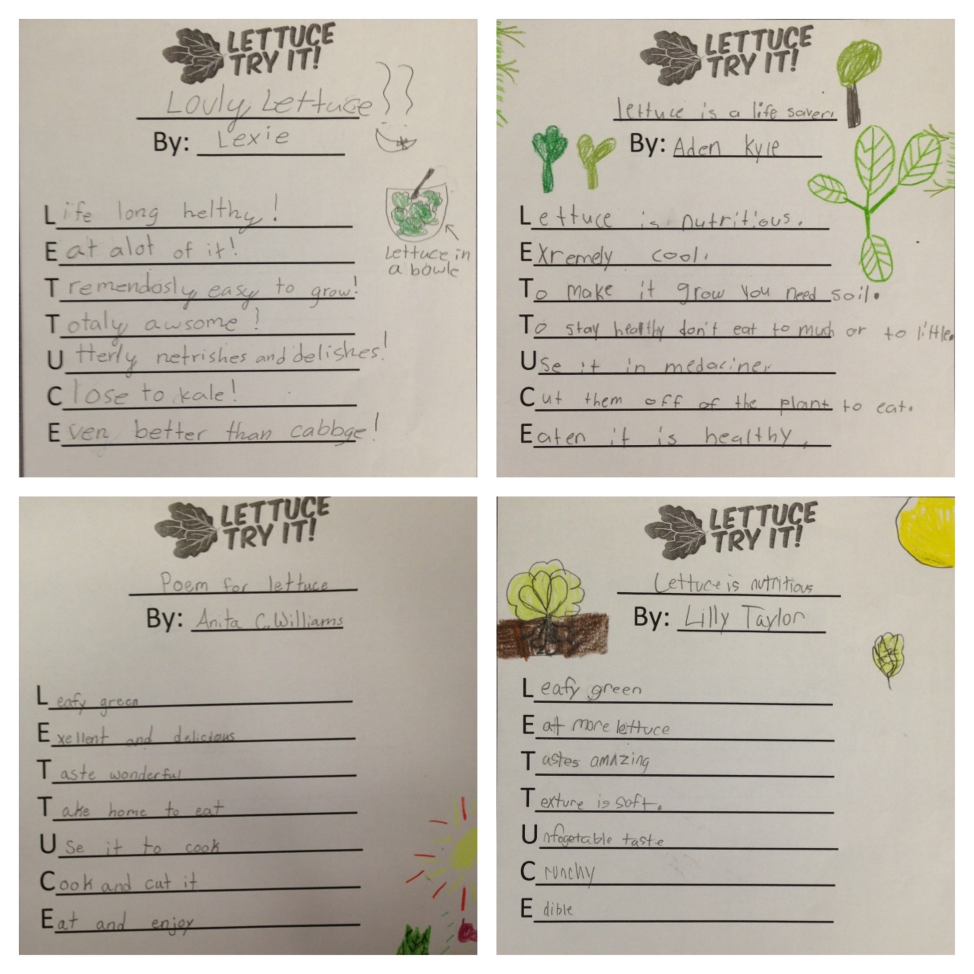 To complete our unit on leafy greens, students created poems to “show what they know.” This lesson was a part of Georgia Organic‘s “Lettuce Try It” series. You can see the lesson plans here.