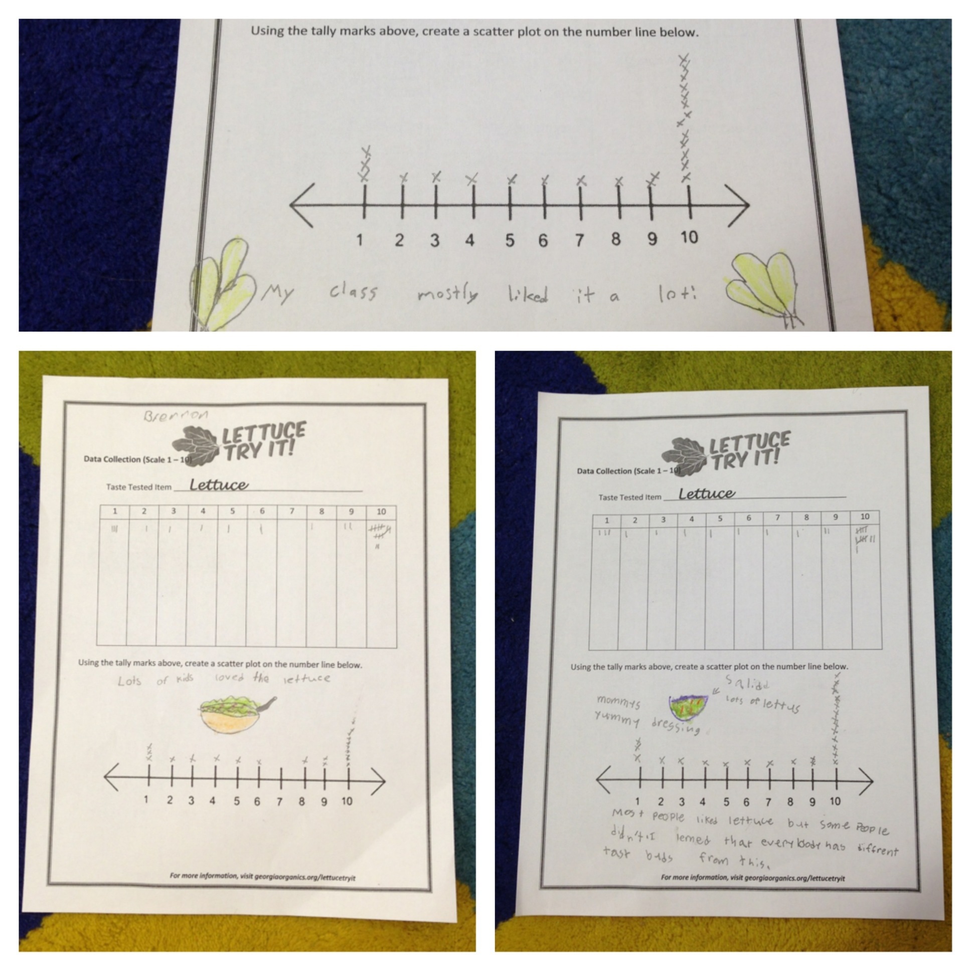 Then, they went a step further to collect data on their classmates showing how much they liked lettuce on a scale from 1 to 10. They showed their data on a scatter plot and then drew conclusions.